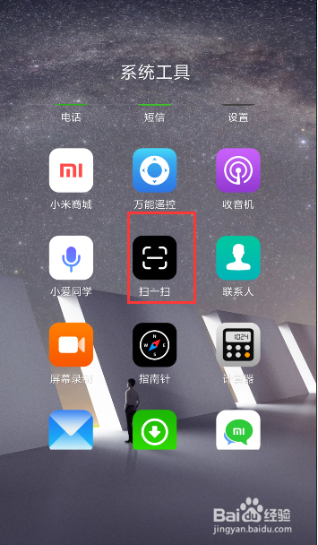 在系统东西夹中,找到我们扫一扫的功能,如图所示