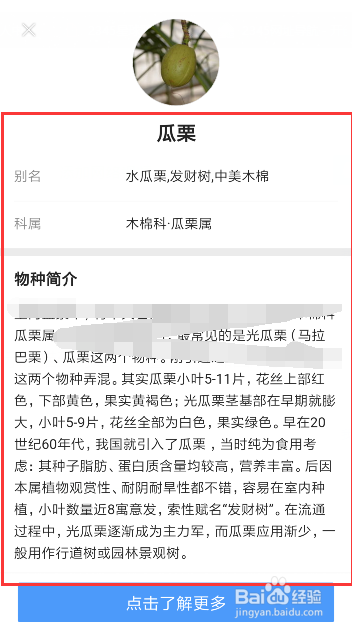 过一会,就会显示扫描到的是什么植物了,还有具体的介绍,如图所示