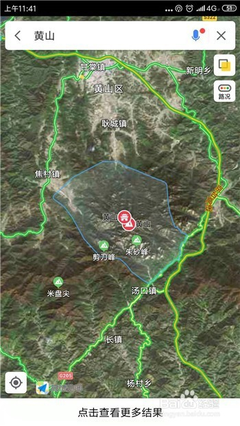 在搜刮界面中输入我们要查看卫星地图的地址并点击搜刮。