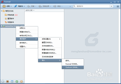 邮件导出之后,打开之前安装的客户端软件,在右上角按钮,打开账号办理,新建新账号