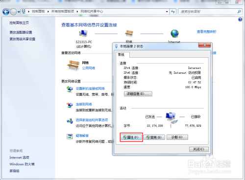 在当地毗连状况里,点击下方属性