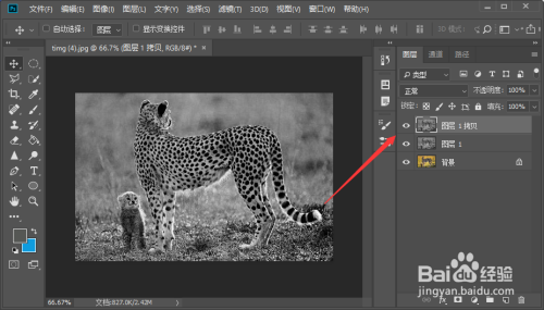 然后在上方东西栏中选择“图像”-“调整”-“去色”,将相片转换当作口角相片。