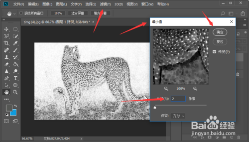 接下来在上方东西栏中选择“滤镜”-“其他”-“最小值”,调整数值直到线条清楚呈现。