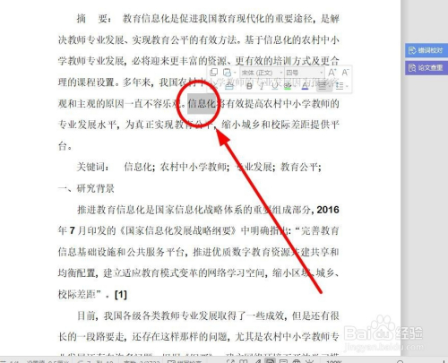 选中要强调的文字,这里选中“信息化”