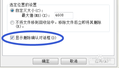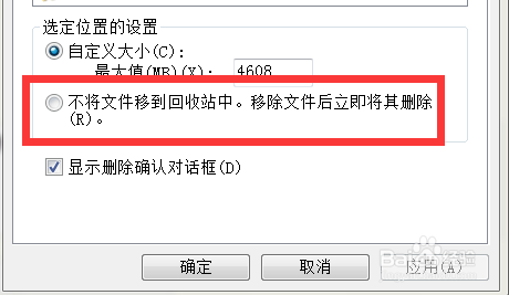 也可以设置直接删除文件选择项,而不是删除到收受接管站。