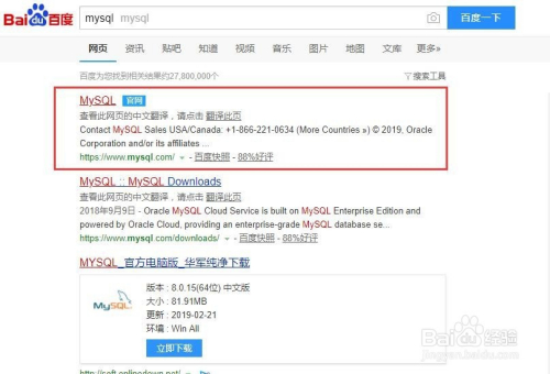 首先第一步,打开浏览器,搜刮mysql,如图所示,找到红色框中的mysql官网,点击进入。(一般环境下,在官网下载软件是最靠谱的)
