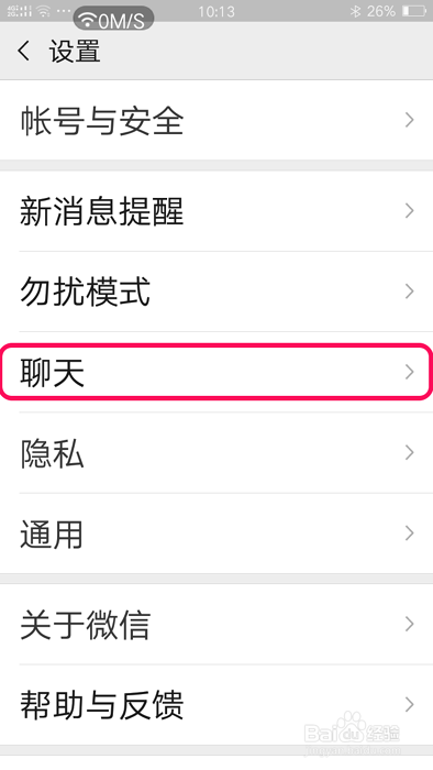 在打开的设置窗口中,再点击【聊天】;