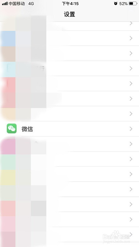 首先我们打开苹果手机的设置界面,在设置界面往下滑动,找到微信,点击微信,进入微信设置界面。