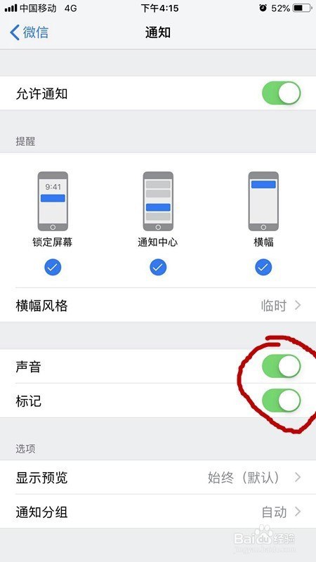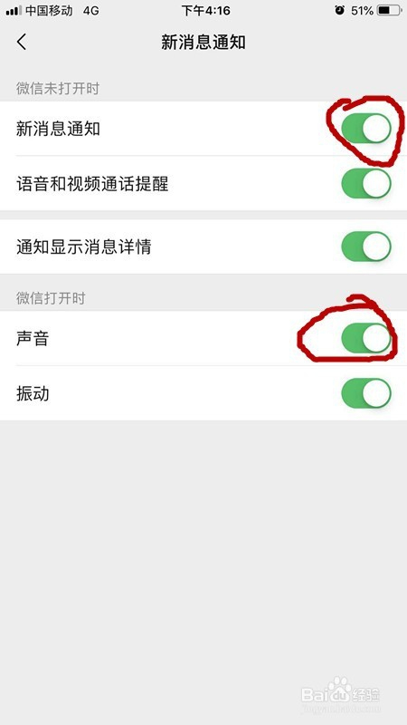 我们查看一下通知里面的声音开关是否打开,没打开的话要打开声音提醒,如下图所示。