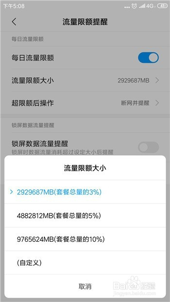 流量的限额可以按照百分比的流量限额,也可以点击自界说本身设置。