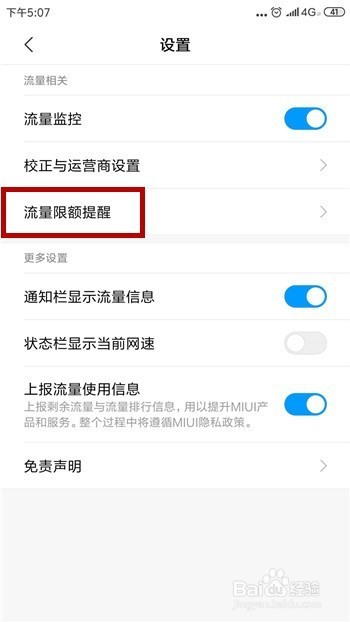 进入到流量设置中点击【流量限额提醒】,如图所示。
