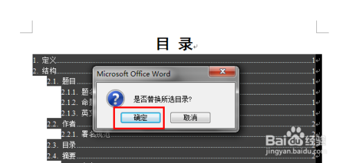 这时再按照上面的方式,进行目次的插入,点击确定,替代本来的目次表即可