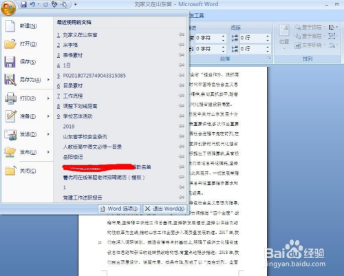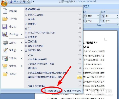 打开肆意Word文档,单击程序徽标,会看到近期的一些文档汗青记实