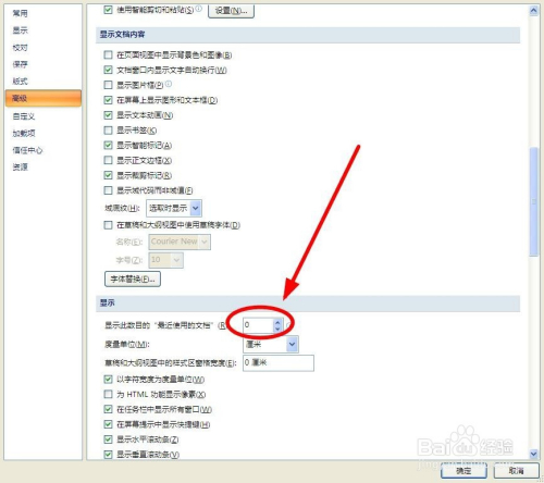 把该选项组下面的第一选项【显示此数量的“比来利用的文档”】后面的数字改当作“0”
