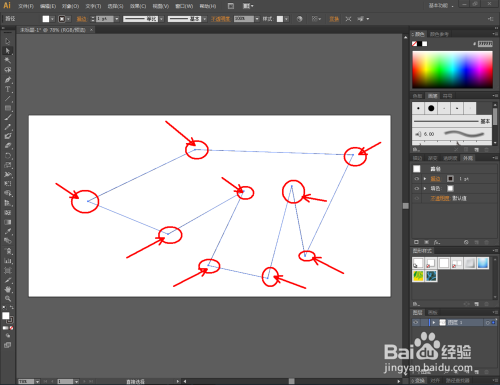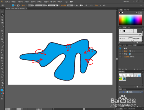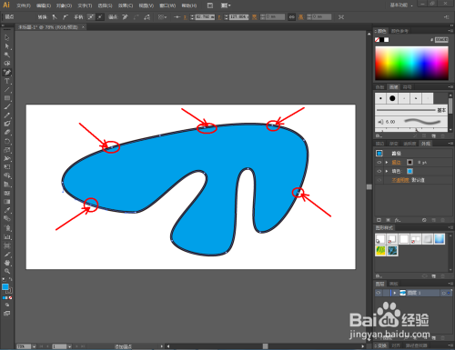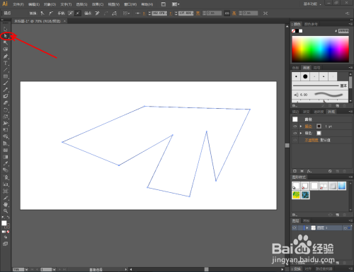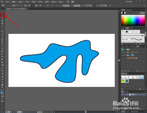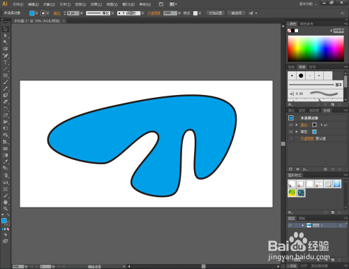 选中图案,点击上方色彩界面,将图案填充为蓝色。点击【描边】对图案进行描边宽度设置,完当作初步图案的绘制(如图所示);