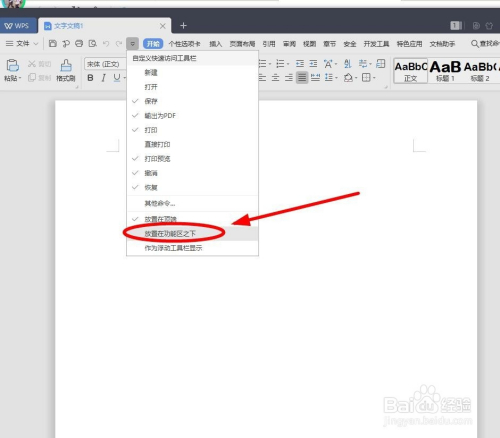 鄙人拉菜单单击“放置在功能区之下”