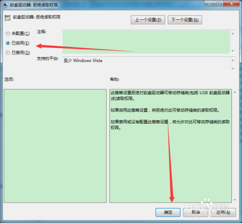 - 启用该组策略后,系统将拒绝读取软盘驱动器的内容;