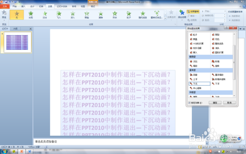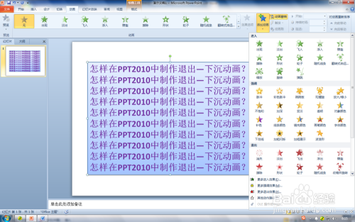 在PPT建造过程中自界说动画的设置是很主要的一个环节,分歧版本的PPT自界说动画的设置方式有所区别。那么,如何在PPT2010中设置退出-下沉自界说动画呢?下面和大师分享一下我的经验,但愿能帮到你。