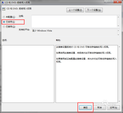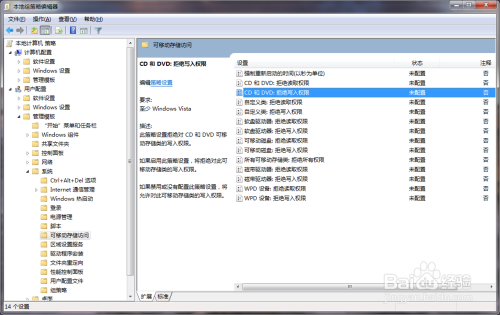 - 启用该组策略,系统将拒绝可移动存储的写入权限;
