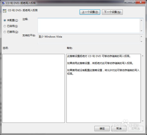 双击打开“CD和DVD拒绝写入权限”设置装备摆设对话框;