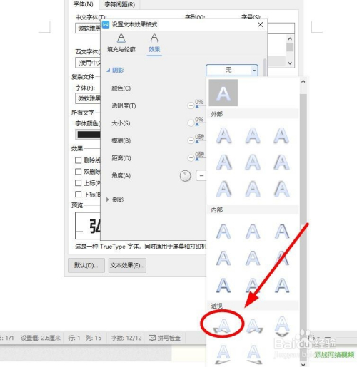 鄙人拉菜单的“内部”“外部”“透视”三种类型中选择一种结果单击(这里选择“透视”下面的第一种)