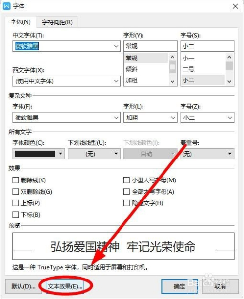 在弹出的“字体”对话框,找到最下面的“文本结果”号令按钮单击