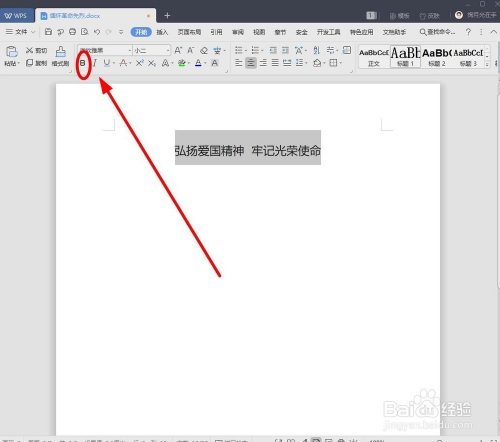 找到“起头”选项卡下面的“字体”选项组中的“加粗”号令按钮单击。(选择加粗暗影结果会更好)