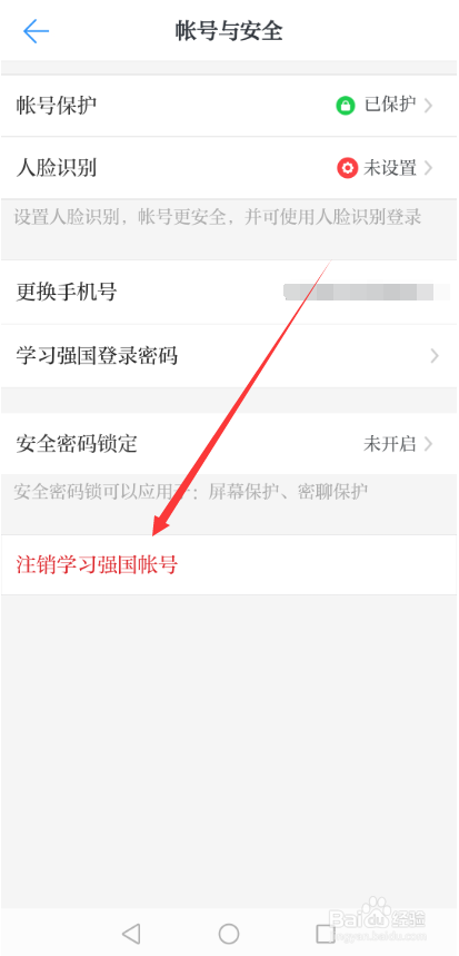 在学习强国账号与平安界面里直接点击下面的【刊出学习强国账号】选项,如下图所示。