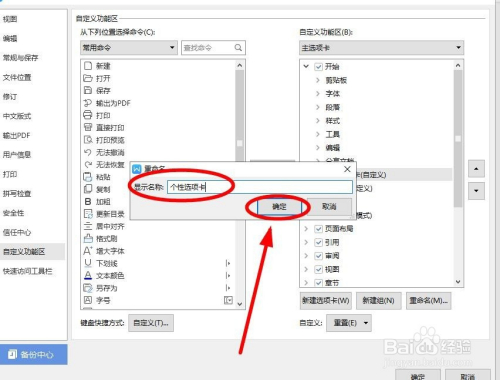 在“重定名”对话框中输入本身便利的选项卡名称,好比“个性选项卡”后单击“确定”