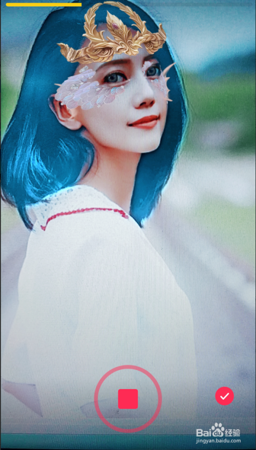 然后我们瞄准本身,点击拍摄,此时就可以进行蓝色头发的拍摄了,视频一般需要后期处置