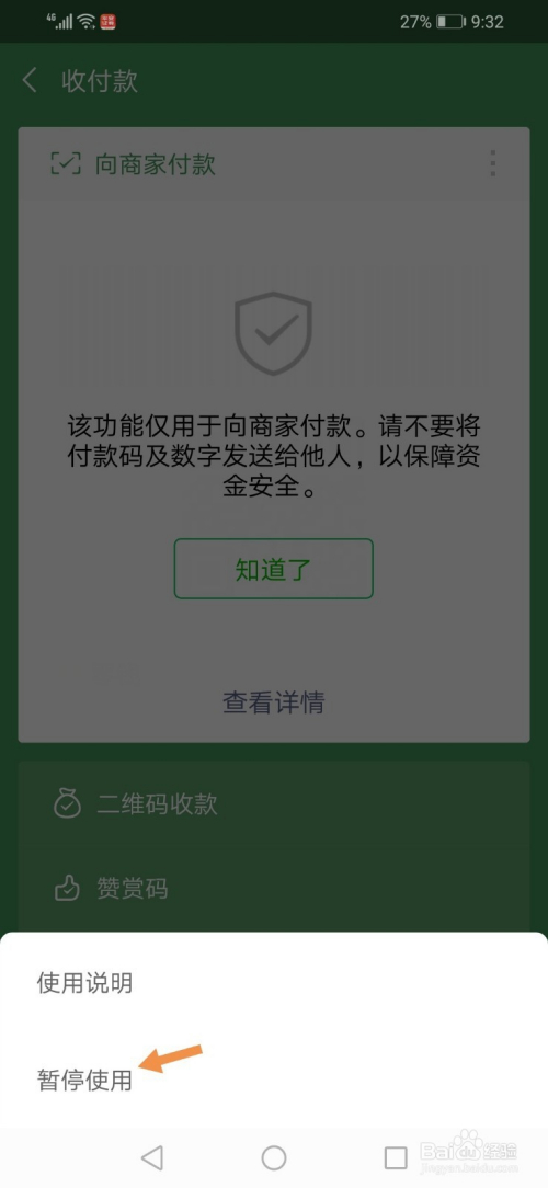 点击暂停利用后,在弹出来的窗口上点击暂定利用,付条目功能就封闭了。