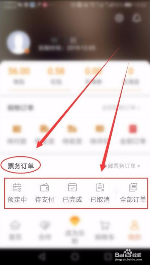 票务订单选项下,可以查看购票订单,分为待付条目、待发货、待收货、待评价,以及全数订单。
