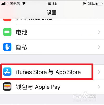 在设置列表内,选择iTunes store与App Store的选项进入。