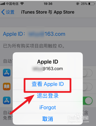 点击后,在弹出的窗口中,我们选择查看AppleID的选项。