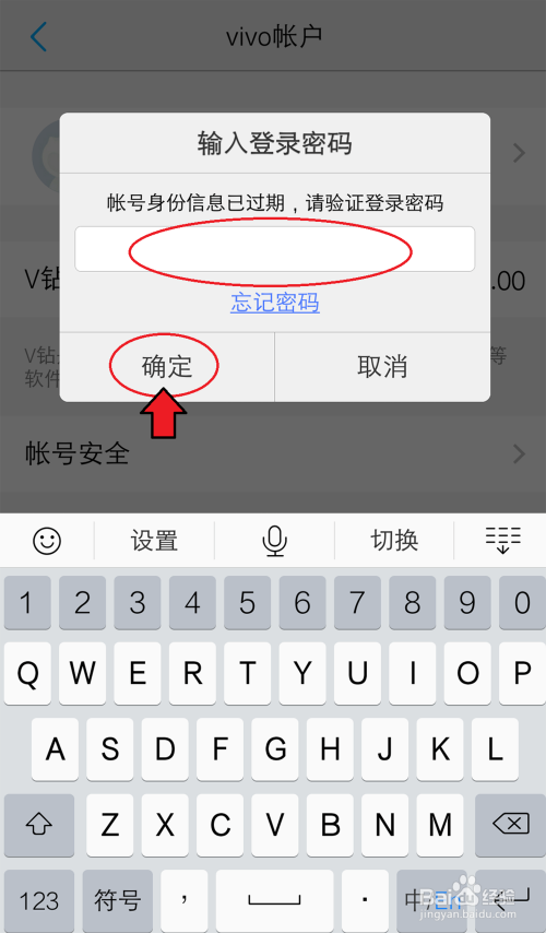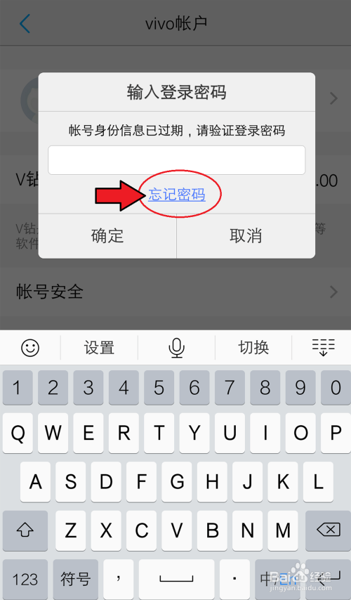 进入vivo账户页面,呈现对话框,点击【健忘密码】。