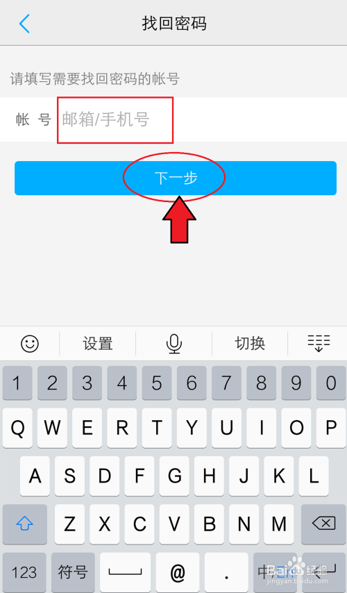 进入找回密码页面,输入邮箱/手机号,点击【下一步】。