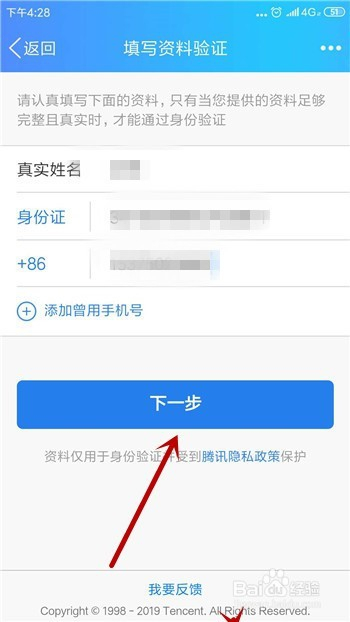 首先需要填写的是我们的身份信息,填好后点击【下一步】。