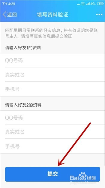 最后就是填写我们的老友资料,填好后点击【提交】,这样即可解冻。