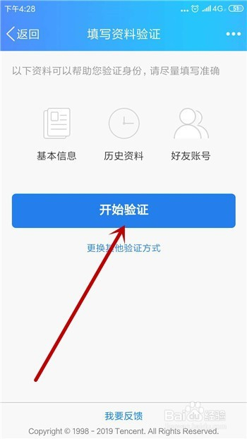 解冻必需填写相关的材料,点击【起头验证】。