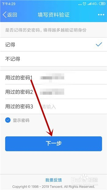 接着需要填写的是我们的汗青密码,这个能记得越多越好,点击【下一步】。