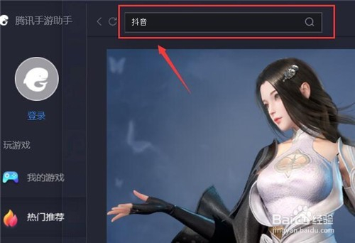 进入腾讯手游助手页面后,在最上端的搜索框中输入“抖音”,按键盘上的“enter”键进行搜刮