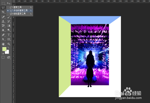 再利用多边形套索东西画出两个大小纷歧样梯形出来,并填充上纷歧样颜色