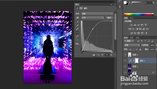 移动扣好的人物放置合适位置,接着点击调整曲线调节亮度