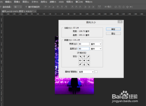 在菜单栏里图像——画布大小——输入参考参数宽80厘米,高度80厘米,点击相对