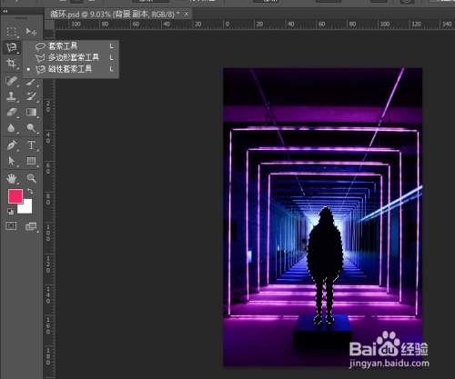 接着利用磁性套索东西把人物扣出来,在Ctrl+J再次拷贝一个图层