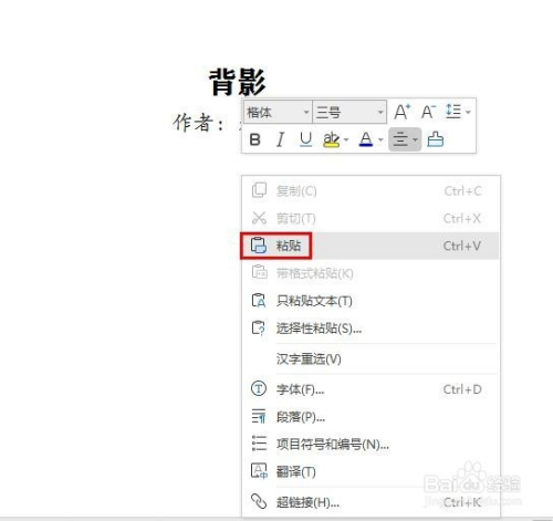 第三步:光标定位在需要粘贴的位置,单击鼠标右键选择“粘贴”。