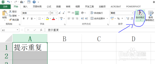 教程以新建的Excel2013文档为例来介绍如何用颜色标识表记标帜,主动提醒输入了反复值技巧。