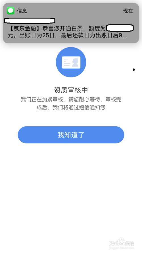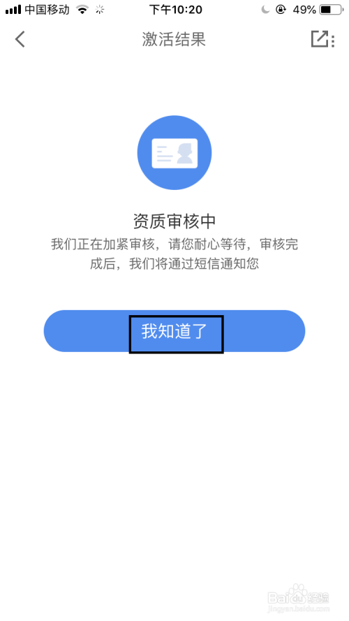 然后打开激活扣果的界面中有天资审核中的提醒,此时在界面中点击“知道了”。