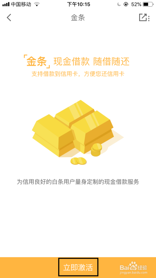然后再返回到金条的界面中点击“当即激活”。