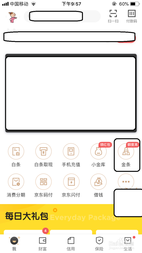 打开京东金融的界面中(首页)点击“金条”。